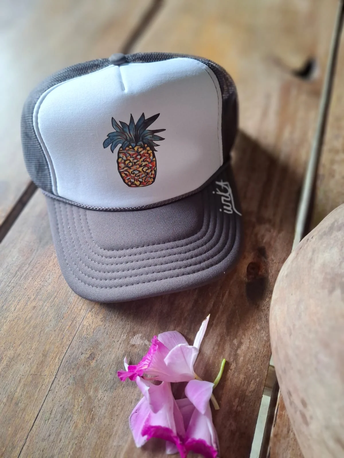 Understated with just the right amount of color. The gray Pavones Pineapple Ball Cap blends neutral tones with bold island energy.