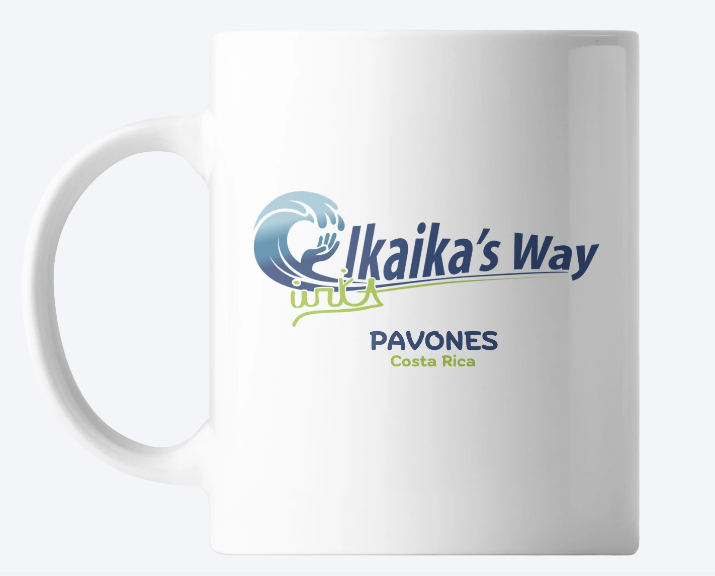 Ceramic mug with Pavones wave artwork. Inspired by surf, sea, and slow mornings.