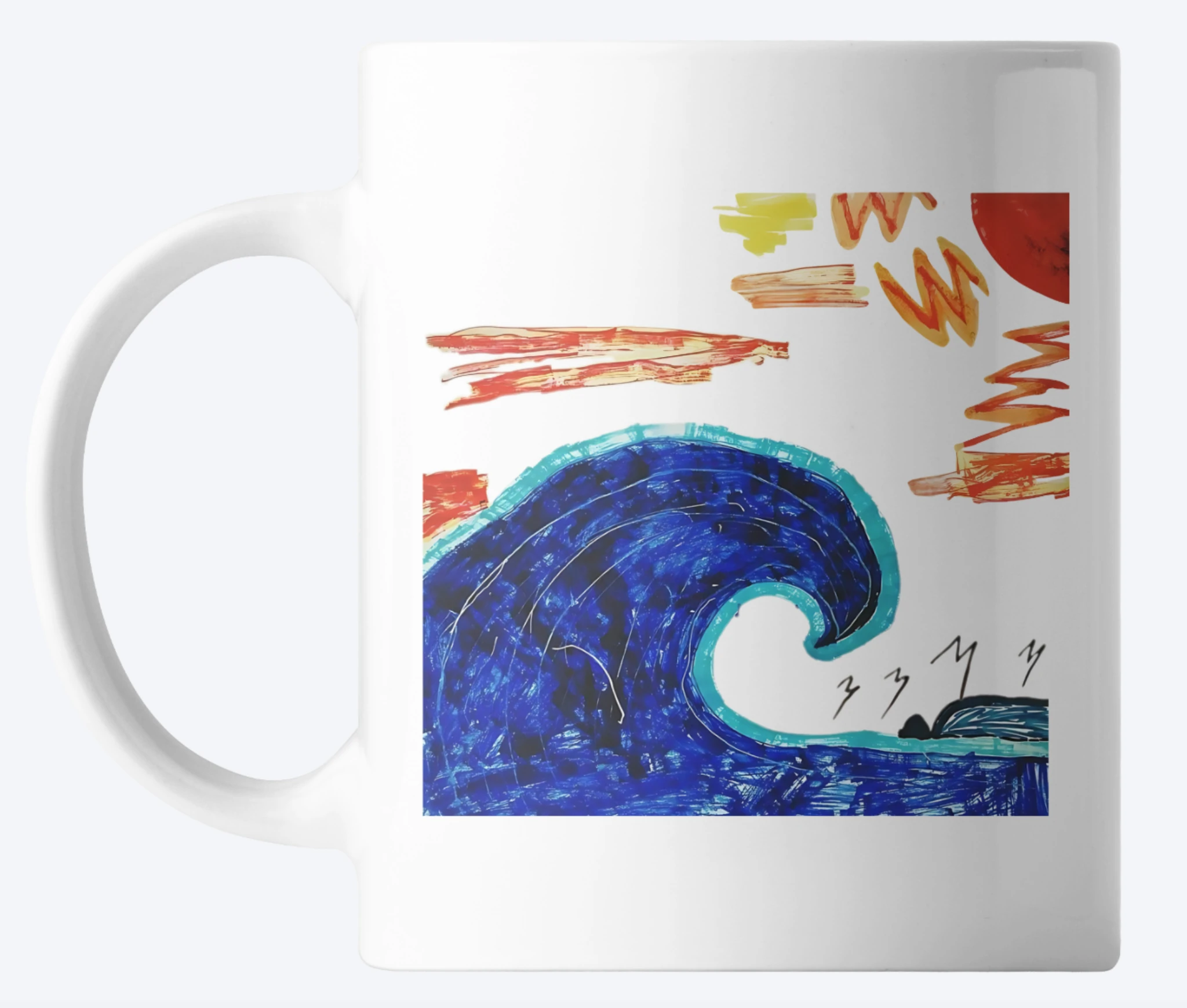 For early mornings and surf checks. The Pavones Wave Mug captures the energy of the ocean with a bold, hand-painted wave design that wraps around the mug.